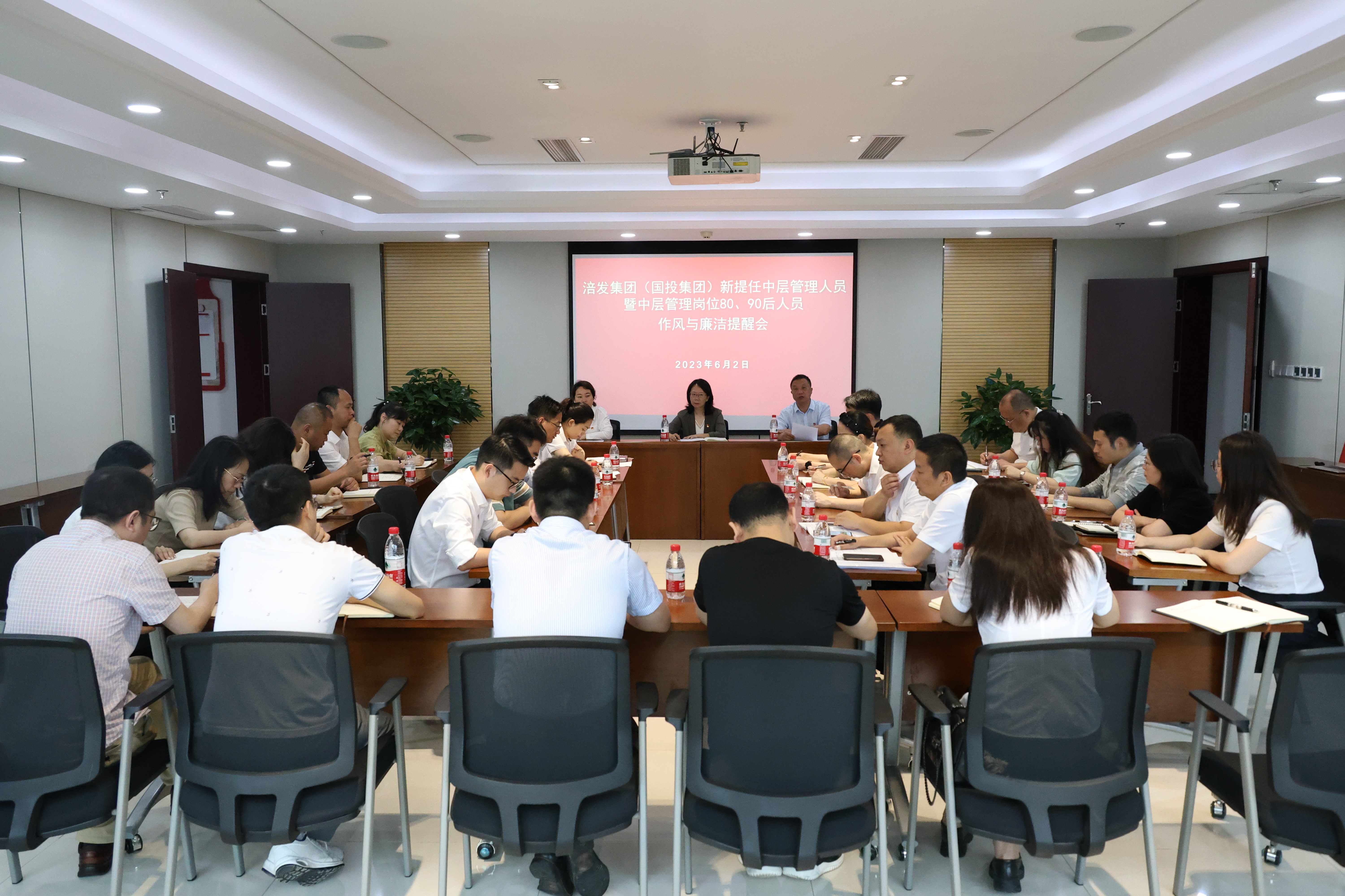 年6月2日,涪發(fā)集團(國投集團)組織召開“新提任中層管理人員暨中層管理崗位80、90后人員作風與廉潔提醒會”,銀科擔保公司相關(guān)人員參加。會上紀委書記周平同志對年輕干部作廉潔提醒并提出要求。