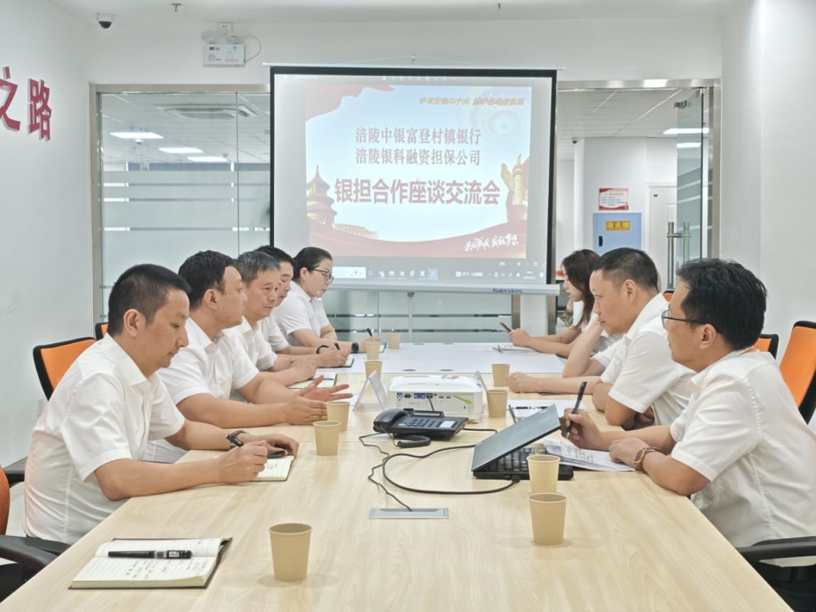 2025年9月2日,銀科擔(dān)保公司總經(jīng)理付習(xí)桓率隊(duì)赴涪陵中銀富登村鎮(zhèn)銀行開展業(yè)務(wù)交流。雙方圍繞深化"銀擔(dān)合作"機(jī)制、強(qiáng)化政策協(xié)同效應(yīng)、助力小微企業(yè)和"三農(nóng)"發(fā)展等議題進(jìn)行了深入探討。涪陵中銀富登村鎮(zhèn)銀行行長李季昀及銀科擔(dān)保公司相關(guān)負(fù)責(zé)人共同參與座談。