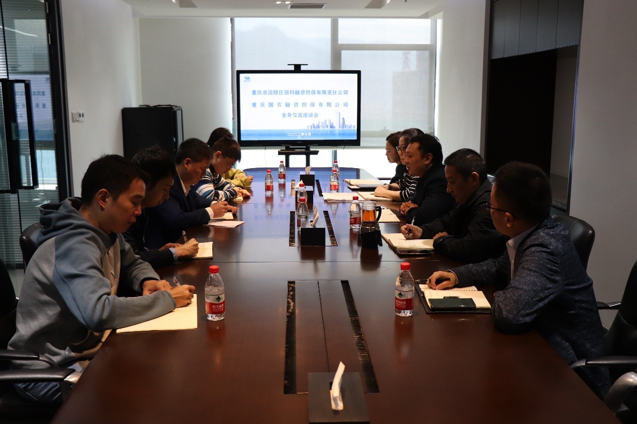 2022年10月12日,重慶國農(nóng)融資擔(dān)保有限公司總經(jīng)理喻量一行到銀科擔(dān)保公司開展業(yè)務(wù)交流座談。會上雙方就如何拓展融資擔(dān)保和非融擔(dān)保業(yè)務(wù),以及當(dāng)前形勢下如何進(jìn)一步加強(qiáng)風(fēng)險控制進(jìn)行了深入交流。