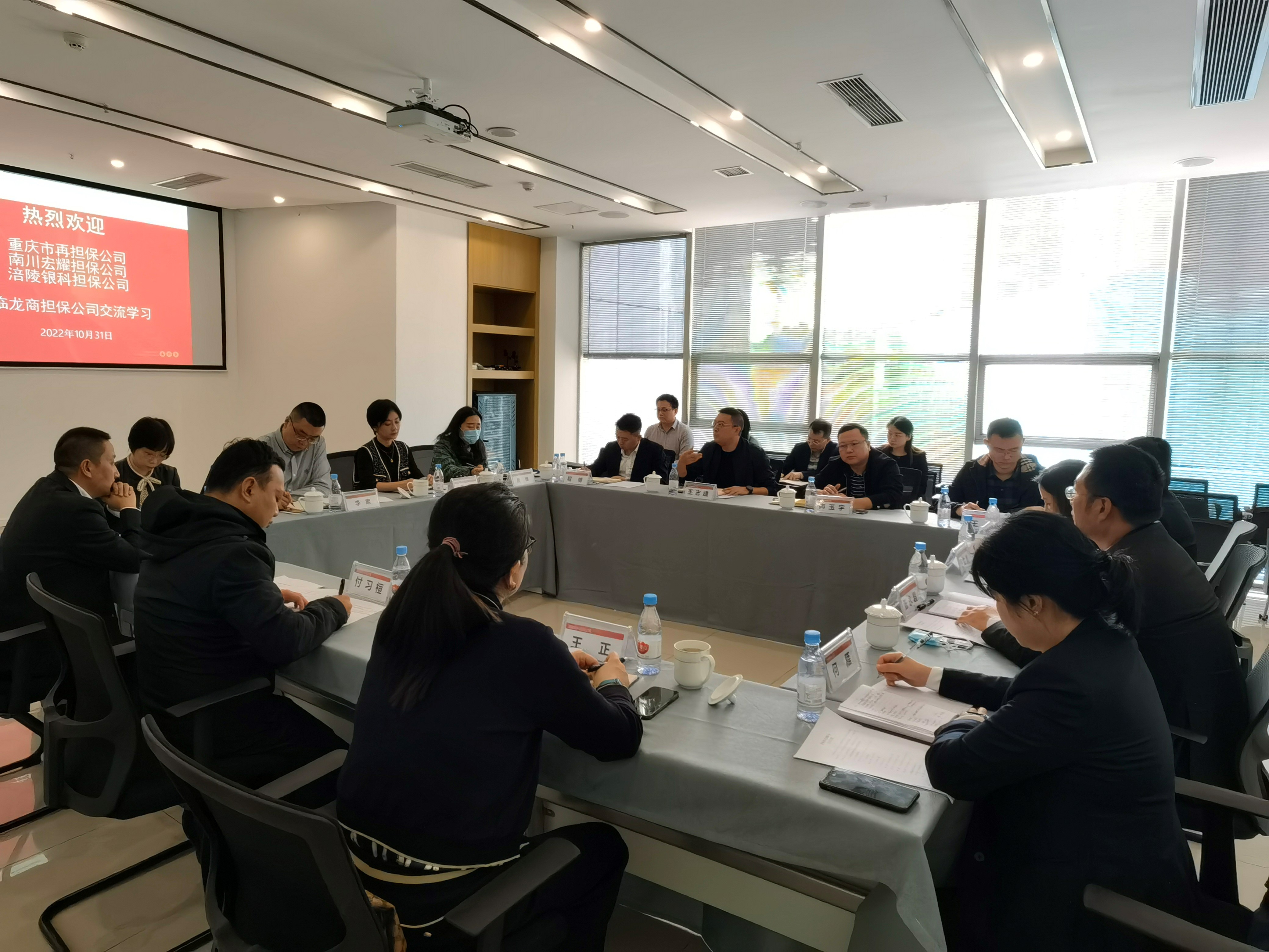 2022年10月31日下午,公司總經(jīng)理付習(xí)桓帶隊(duì)前往重慶龍商擔(dān)保公司,與重慶再擔(dān)保公司、重慶龍商擔(dān)保公司、南川宏耀擔(dān)保公司進(jìn)行了業(yè)務(wù)交流。參會(huì)代表就如何在當(dāng)前經(jīng)濟(jì)形勢(shì)下更好地助力市場(chǎng)主體紓困發(fā)展,發(fā)揮政府性融資擔(dān)保作用等一系列問題展開了探討。